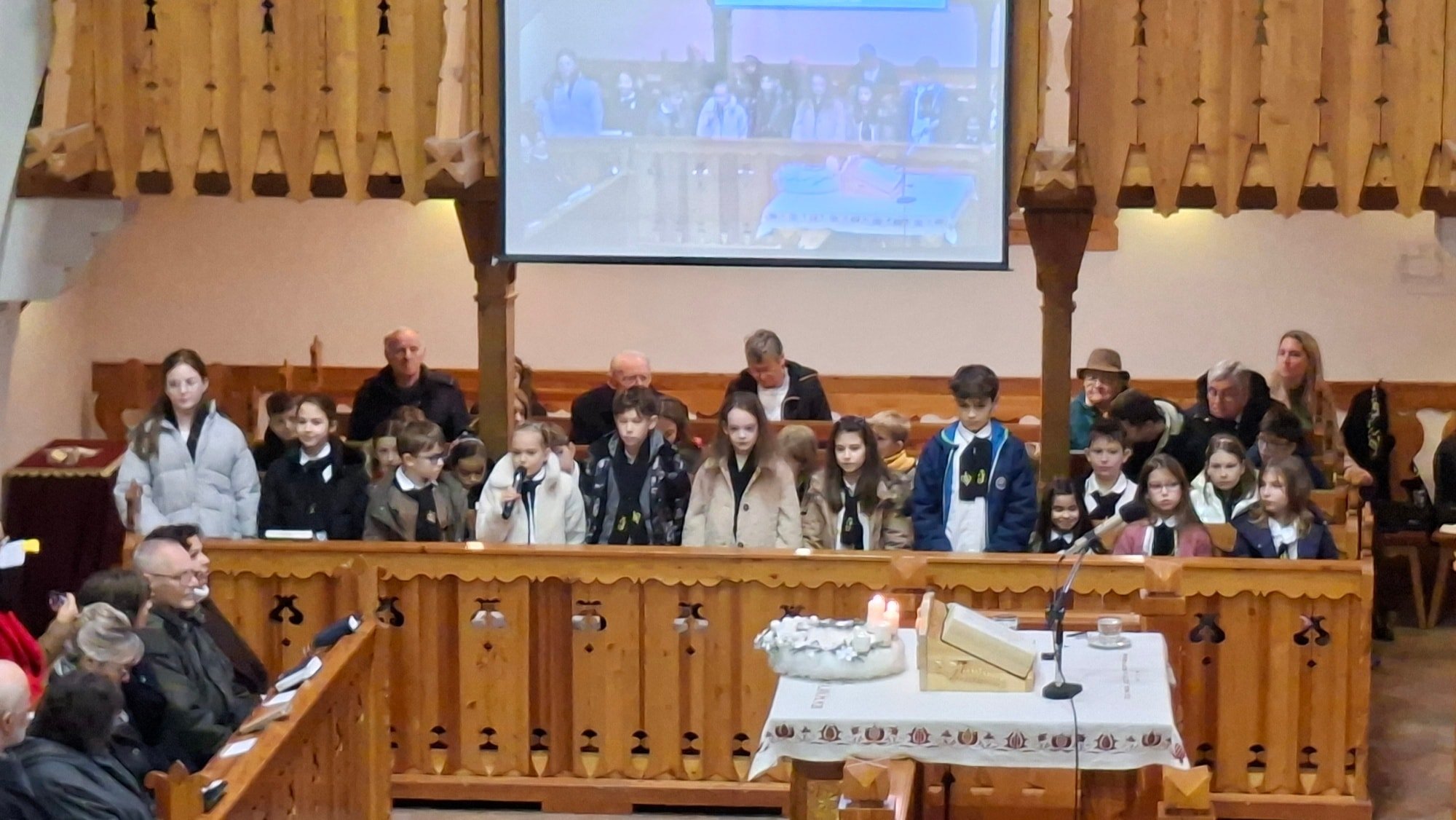 A Jókai 4.b osztályának szolgálata az istentiszteleten (2025.12.07.) A Jókai 4.b osztályának szolgálata az istentiszteleten (2025.12.07.) Köszönjük a felkészítést Koncsol-Thuróczy Krisztina tanárnőnek. Isten áldását kérjük életükre!